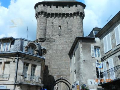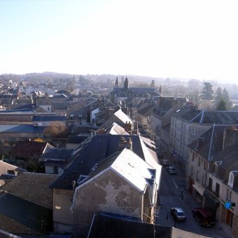 La Souterraine is a small medieval town in the Creuse region that sits on rolling hills and contains old fortified walls, gates, and religious buildings. The settlement spreads across a quiet landscape shaped by these historical structures.