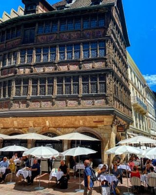 A restaurant operates inside the building, offering dining right next to Strasbourg Cathedral and making it convenient to visit after exploring the square. Trams A, B, C, D, and F stop nearby, providing straightforward access to the area, though visitors should expect crowds since it sits on a heavily visited plaza.