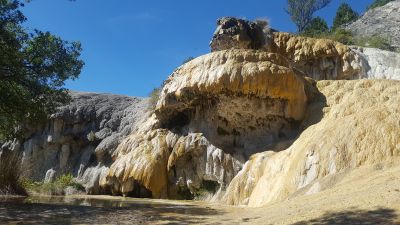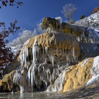 The Petrifying Fountain of Réotier creates natural limestone formations through mineral water deposits, forming distinctive geological structures.