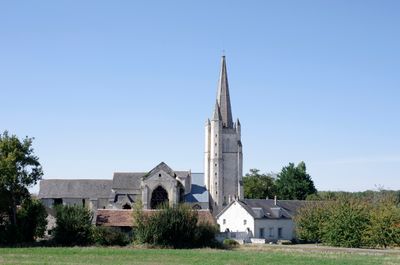 Saint-Michel de Bois-Aubry Abbey features a tall 14th-century bell tower, a rood screen, and an echo chamber within its stone buildings.