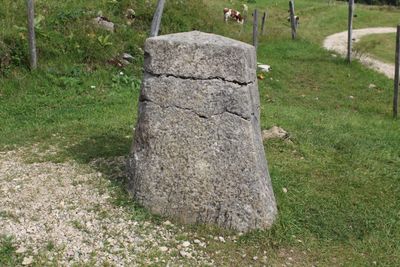 Borne au Lion, Historic boundary stone at Crêt de Chalam, France.