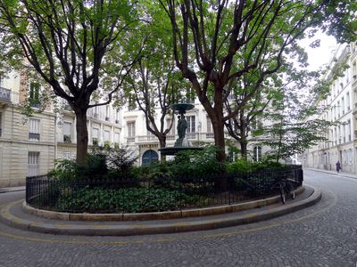 The Cité de Trévise extends 190 meters in length and 7.6 meters in width, featuring a central square with trees and a fountain.