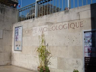 The archaeological crypt beneath Île de la Cité is an underground space where overlapping layers of Roman, Frankish, and medieval structures have been uncovered and left in place. The site displays foundation walls, floor levels, and structural fragments from different periods arranged side by side.