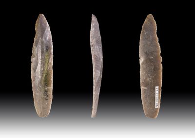 Archaeological excavations uncovered Sorde 1, an adult human skeleton accompanied by 55 cave bear and cave lion canines showing signs of human modification.