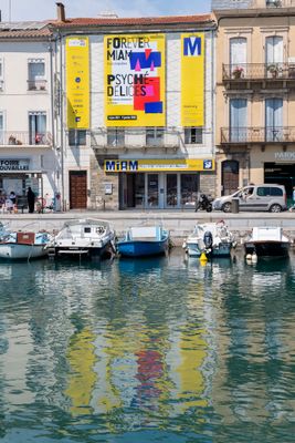 The Musée International des Arts Modestes displays unconventional art forms, toys, small figures, and mass-produced items in a renovated industrial building near the canal.