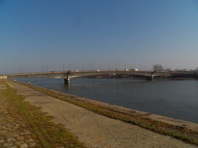 The construction of this modern bridge began in 1993 and reached completion in 1995, requiring an investment of 275 million French francs.
