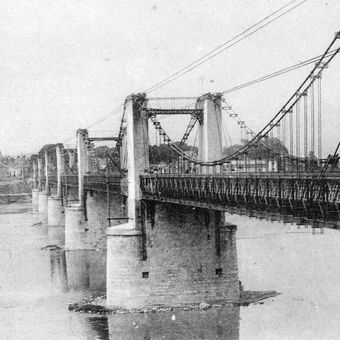 The original bridge, constructed in 1834, underwent reconstruction in 1847 and suffered damage during the Franco-Prussian War before being repaired in 1872.