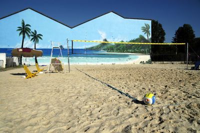 This inland beach facility receives 9000 visitors each season for sand sports activities despite being situated in an Alpine city.