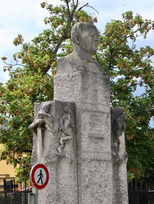 The Porte Molitor features stone construction and stands at the intersection of multiple transportation routes in western Paris.