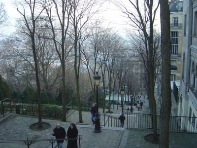 The Rue Foyatier extends for 100 meters with a series of steps that lead to the Sacré-Cœur Basilica in the 18th arrondissement of Paris.
