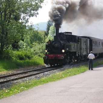 The railway operates on a 12-kilometer track between Cernay Saint-André and Sentheim, passing through valleys and natural landscapes of Alsace.