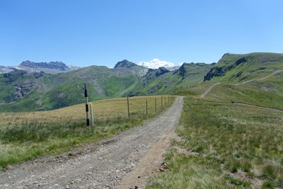 Tête Pelouse reaches an elevation of 2,537 meters in the French Alps, featuring a defined trail system that leads through alpine meadows to its peak.