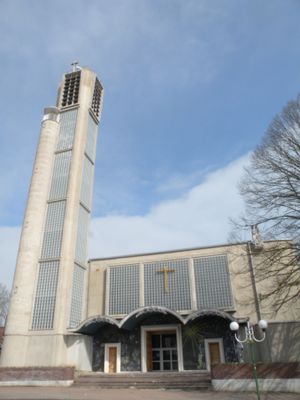 The church construction began in 1955 under architect André Lurçat's direction as part of the post-war reconstruction program and received consecration in 1958.