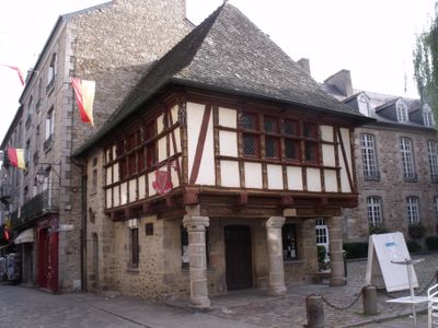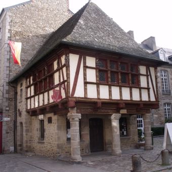 Built in 1559 in Lanvollon, this timber-framed house was dismantled in 1934 and reconstructed in Dinan in 1939, featuring granite columns and period sculptures.
