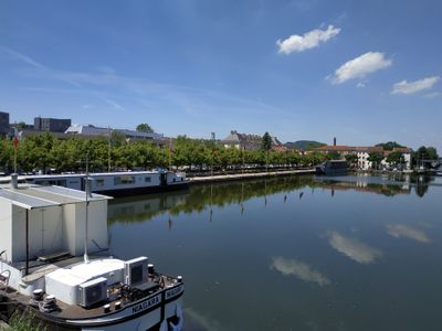 Quai Sainte-Catherine extends along the Meurthe River, providing parking spaces and direct access to the city center of Nancy.