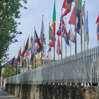 Located near Building IV of the UNESCO headquarters, this 16-foot-long and 8-foot-high sculpture weighs 38 tons and stands against the modernist architecture.