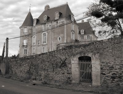 The Château de Sautré stands on a rocky promontory overlooking the Suine stream, featuring a corner tower and preserved lower foundations of the keep.