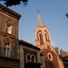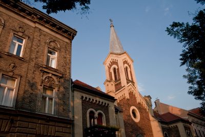 The Greek Catholic Church stands at the center of Rózsák tere, featuring architectural elements that combine different design patterns of the late 19th century.