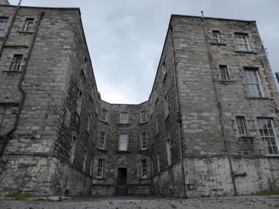 Debtors' Prison Dublin is a former detention facility in the north inner city built from granite and limestone with a U-shaped design. The three-story structure sits over a vaulted basement and contained 33 cells throughout its layout.