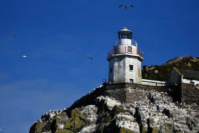 Bull Rock Lighthouse stands on a rocky islet rising about 93 meters (305 feet) with sheer cliffs surrounding it on all sides. The island features a natural tunnel running through its center, creating an unusual passage for boats to navigate directly beneath the rock.