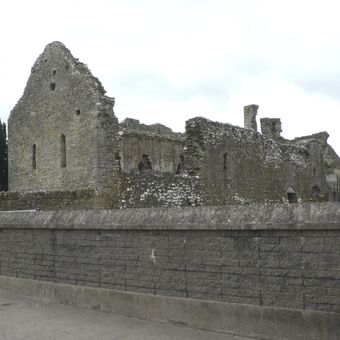The remaining stone walls of Hospital Church stand within the boundaries of Hospital village, displaying ancient ecclesiastical architecture of Ireland.
