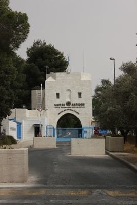 The United Nations headquarters occupies the building, which stands at 820 meters above sea level on a hill overlooking the Old City of Jerusalem.