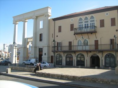 The Sarahiya House exhibits a neoclassical facade with two floors, standing prominently in the historic district of Jaffa as a public administration center.
