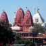 The temple stands opposite to the Red Fort with three sandstone spires and a main devotional area located on the first floor.