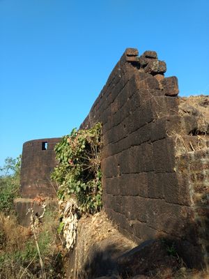 The fort contains a mango orchard within its walls and stands near an ancient temple of Uddalakeshwar, with a lighthouse positioned two kilometers away.
