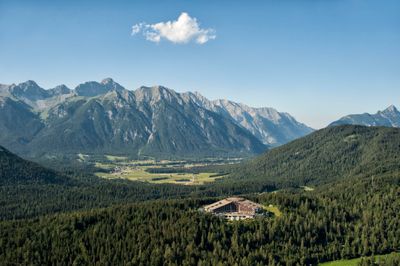 The Interalpen-Hotel Tyrol stands at 1,300 meters above sea level, offering mountain views from its location in the Tyrolean Alps near Seefeld.