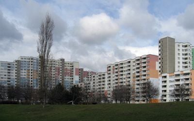 The Trabrenngründe residential development encompasses 59 stairwells with 2,400 apartments across an area of 195,000 square meters in Vienna's 22nd district.