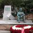 This memorial stands at the base of a hill formed by the accumulation of wartime rubble, marking the physical traces of World War II destruction.