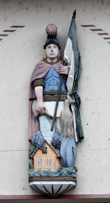 Figur des Hl. Florian, Gars am Kamp, Figur des Heiligen Florian von Hans Schwabenicky am Haus der Freiwilligen Feuerwehr Gars am Kamp (Niederösterreich)