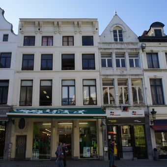 Ensemble de maisons traditionnelles, traditionele huizen in Brussel, België (Ambachtengang, Boterstraat 28 - 46)