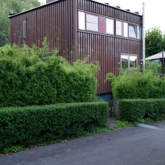 Sart Saint-Nicolas is a residential settlement in Marcinelle comprising 14 ground-level houses organized around a central plaza. The entire development spans about 2 hectares of land situated between a slag heap and a recreational area.