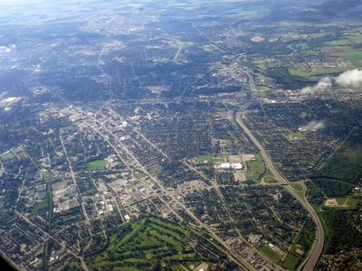 The Grand River Transit system connects all municipalities through regular bus routes and a light rail transit line serving major population centers.