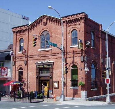 The Halifax Alehouse operates in a brick Second Empire style building with Gothic Revival elements at the base of Halifax Citadel.