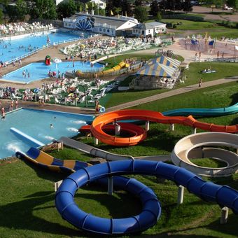 Magic Mountain is a water park in Moncton featuring multiple slides of varying heights and styles, a wave-generating pool, and floatable river channels. The facility combines different types of water attractions for visitors of different ages and swimming abilities.
