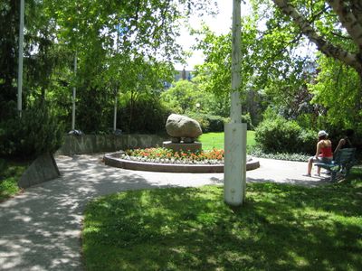 A massive boulder from Norway stands as a monument in the park, transported in 1976 and unveiled by Crown Prince Harald of Norway.