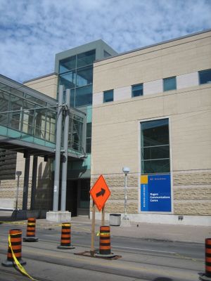 The Rogers Communications Centre contains three high-definition television studios and multiple audio recording suites for student media production at Toronto Metropolitan University.