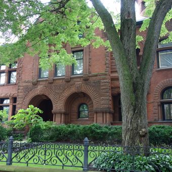 The York Club occupies a three-story Romanesque Revival mansion at 135 St. George Street, featuring sandstone details and a corner tower.