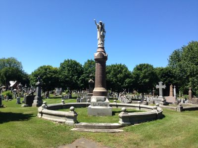 The cemetery contains numerous graves of notable Quebec personalities, with detailed records cataloging historically significant funerary monuments and burial sites.