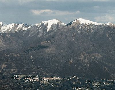 Monte Lema rises to 1620 meters above sea level, marking the border between Italy and Switzerland in the Lugano Prealps mountain range.