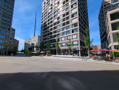 The location shows how contemporary Swiss cities blend housing, offices, and shared spaces together. The design shapes how people move through the area, work, and gather in their daily routines.