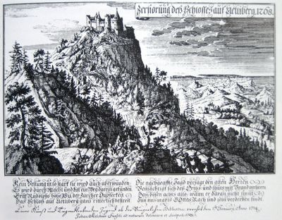 Burg Uetliburg is a medieval castle ruin located on elevated terrain in the Zürich region. The foundations and structural elements of this hilltop fortress remain visible, showing how it was built and arranged.