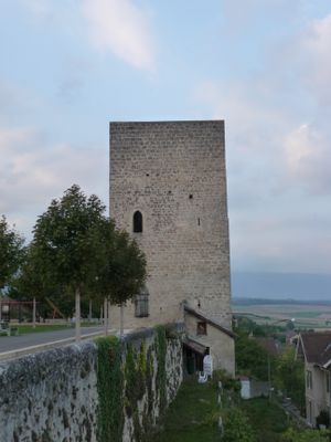 Orbe Castle is a medieval fortress situated on a hilltop overlooking the town of Orbe in Vaud canton. The structure features a square tower and a circular keep, both built to command views of the surrounding valley and roads.