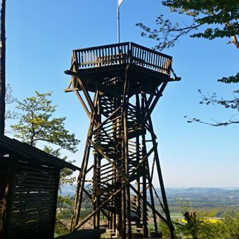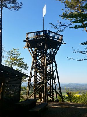The tower stands at 550 meters above sea level, providing views over the Klettgau region, the Black Forest, and extending toward the Alpine peaks.