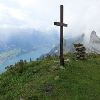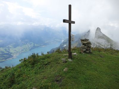 The Schibenstoll peak reaches an elevation within the Churfirsten mountain range, offering views over the Walensee lake and surrounding Alpine landscapes.