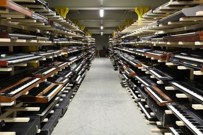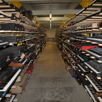 The museum contains thousands of synthesizers, keyboards, organs, and electronic music devices organized in two sections: the Schaulager display area and the Playroom interactive space.