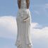 Guanyin of Nanshan is a three-faced statue standing on a lotus platform located on Guanyin Island. The figure is decorated with gemstones and intricate details across its entire surface.